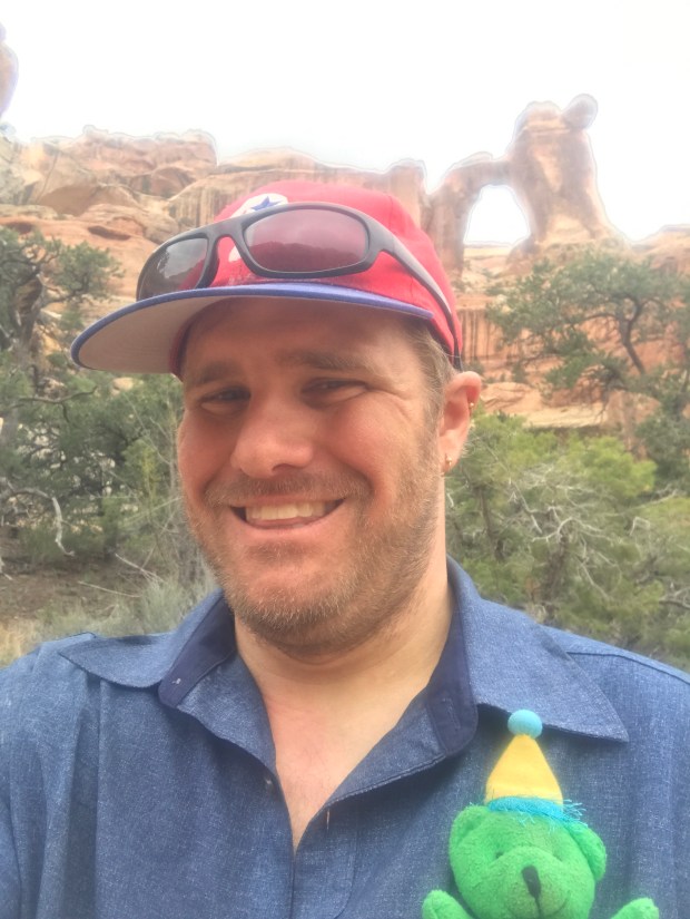 About 10 minutes later I patted my chest pocket and had a sudden horrifying sinking realization. Lydia Geopet was not with me. I took a picture of her at Angel Arch, and then left her sitting on the rock! I felt like Tom Hanks watching Wilson float away…but the ocean….er…trail wasn’t going to win this time! I immediately dropped my pack, grabbed a water bottle and began sprint walking back. 4 extra miles and an hour and a half of walking time later we were safely reunited and on our way again. Phew.