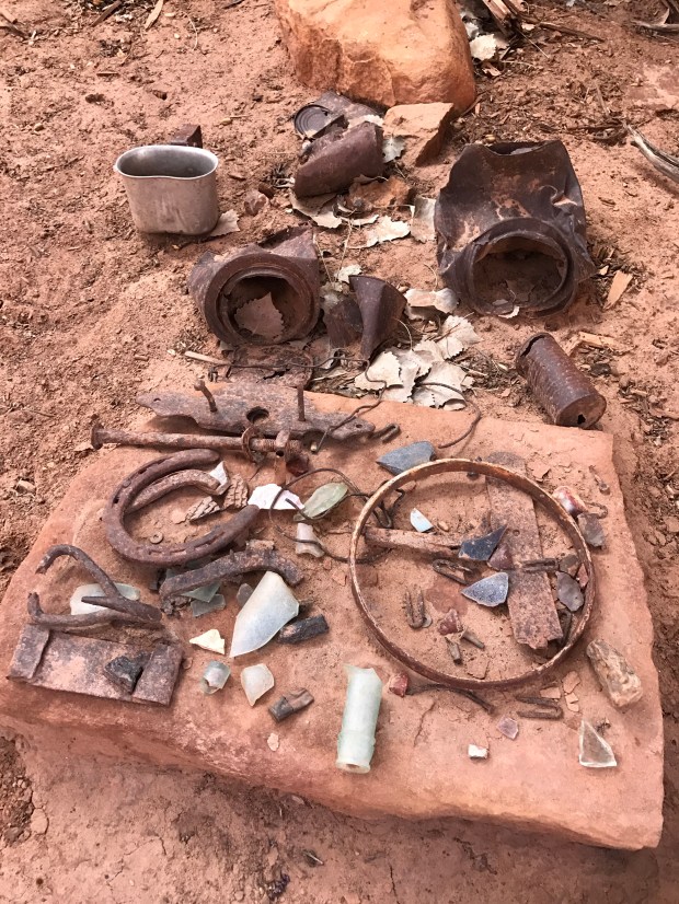 The area isn’t just rich in Ancestral Puebloan history though! I was shocked at one point towards late afternoon to round a bend and find a perfectly built log cabin! Fireplace in the side, broken down wagon and corral outback. Lots of artifacts inside.