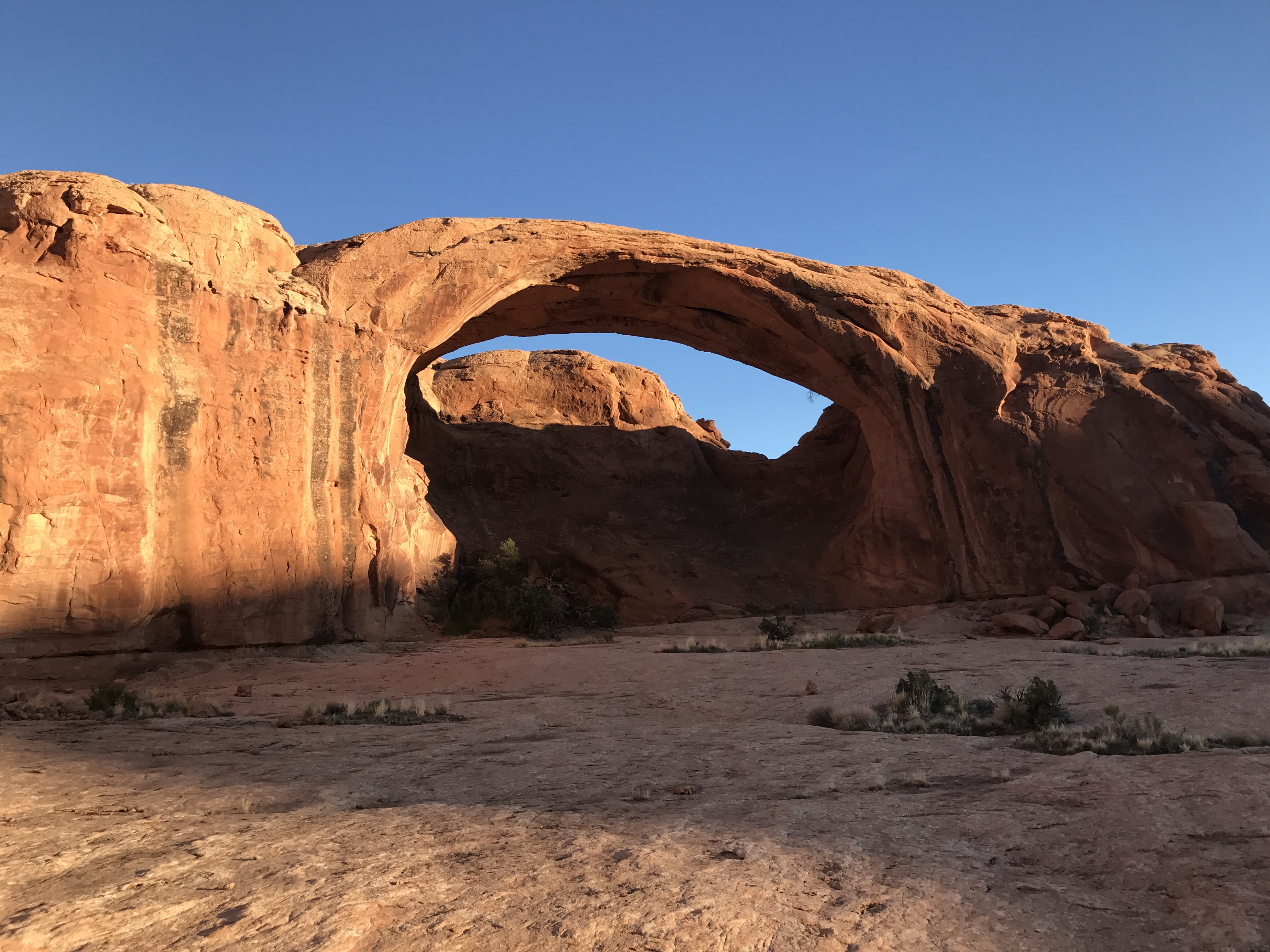 When I started walking though everything felt great! Feet, energy, everything seemed to be clicking! I zoomed up a short detour to Pritchett Arch and kept heading down the road. That was one of the great parts about today- 90% of it was on 4×4 roads ( if you can call those roads), dirt roads, and trail. But that other 10% was a doozy. The mesa that I was hiking on ended in a pretty sheer cliff over Kane Creek Road.