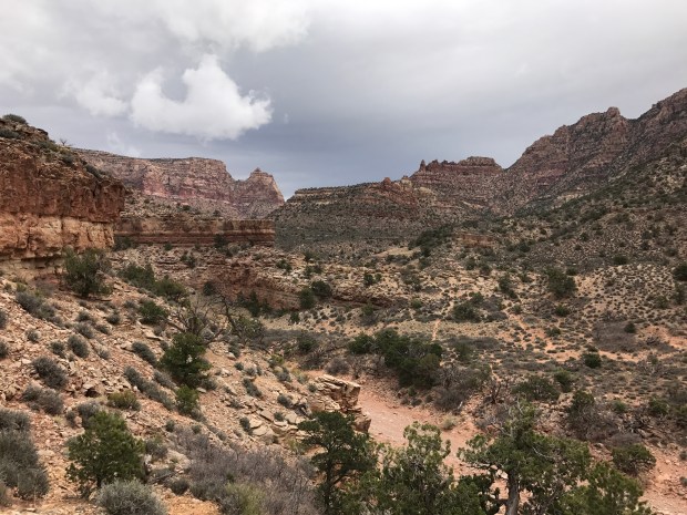 That said, The morning hiking went by super quickly. Everything on trail and easy to follow. It was actually kind of eerie. The sky never really got light- just stayed a dark greyish color. There was no wind. No birds. No tumbling rocks. Just silence. Like the quiet before it all breaks loose. Very ominous.