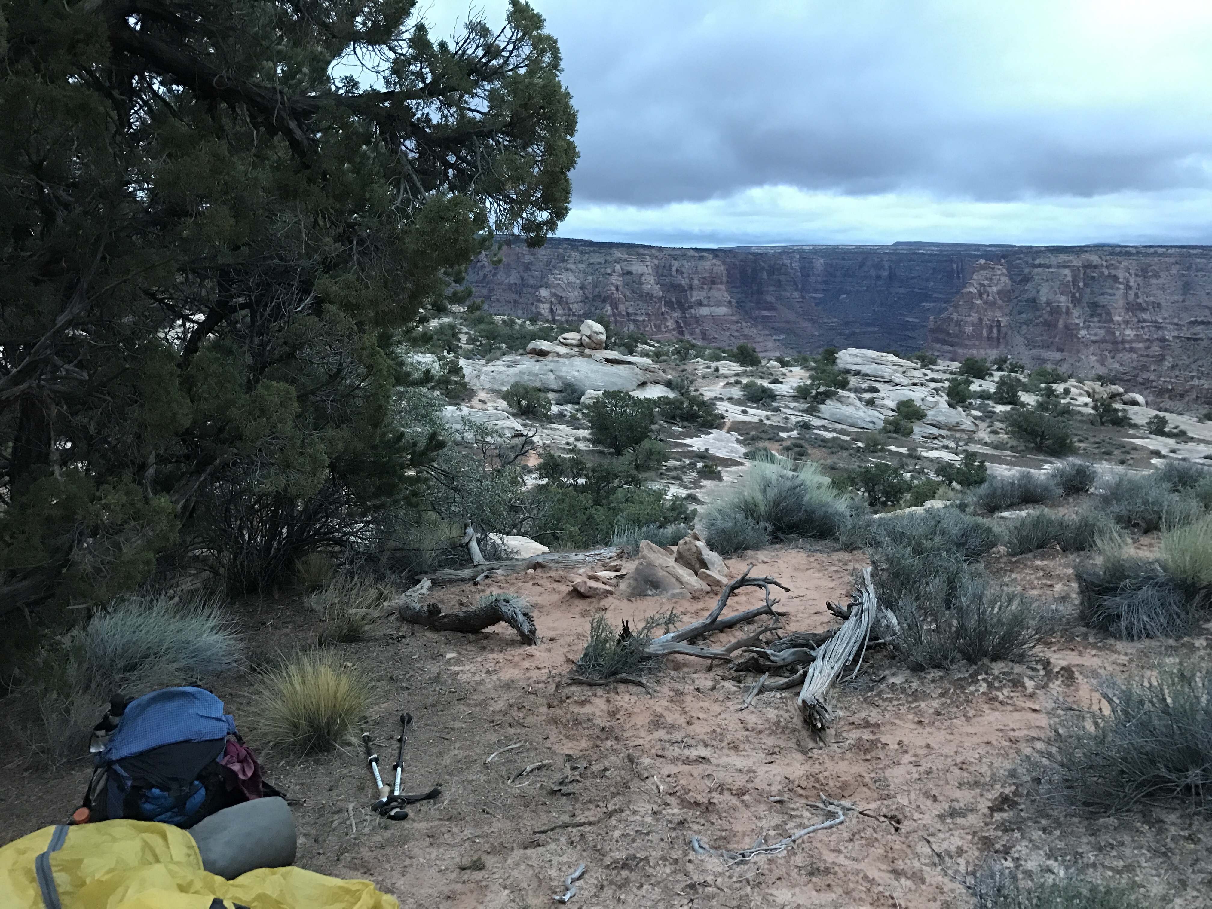 That said, The morning hiking went by super quickly. Everything on trail and easy to follow. It was actually kind of eerie. The sky never really got light- just stayed a dark greyish color. There was no wind. No birds. No tumbling rocks. Just silence. Like the quiet before it all breaks loose. Very ominous.