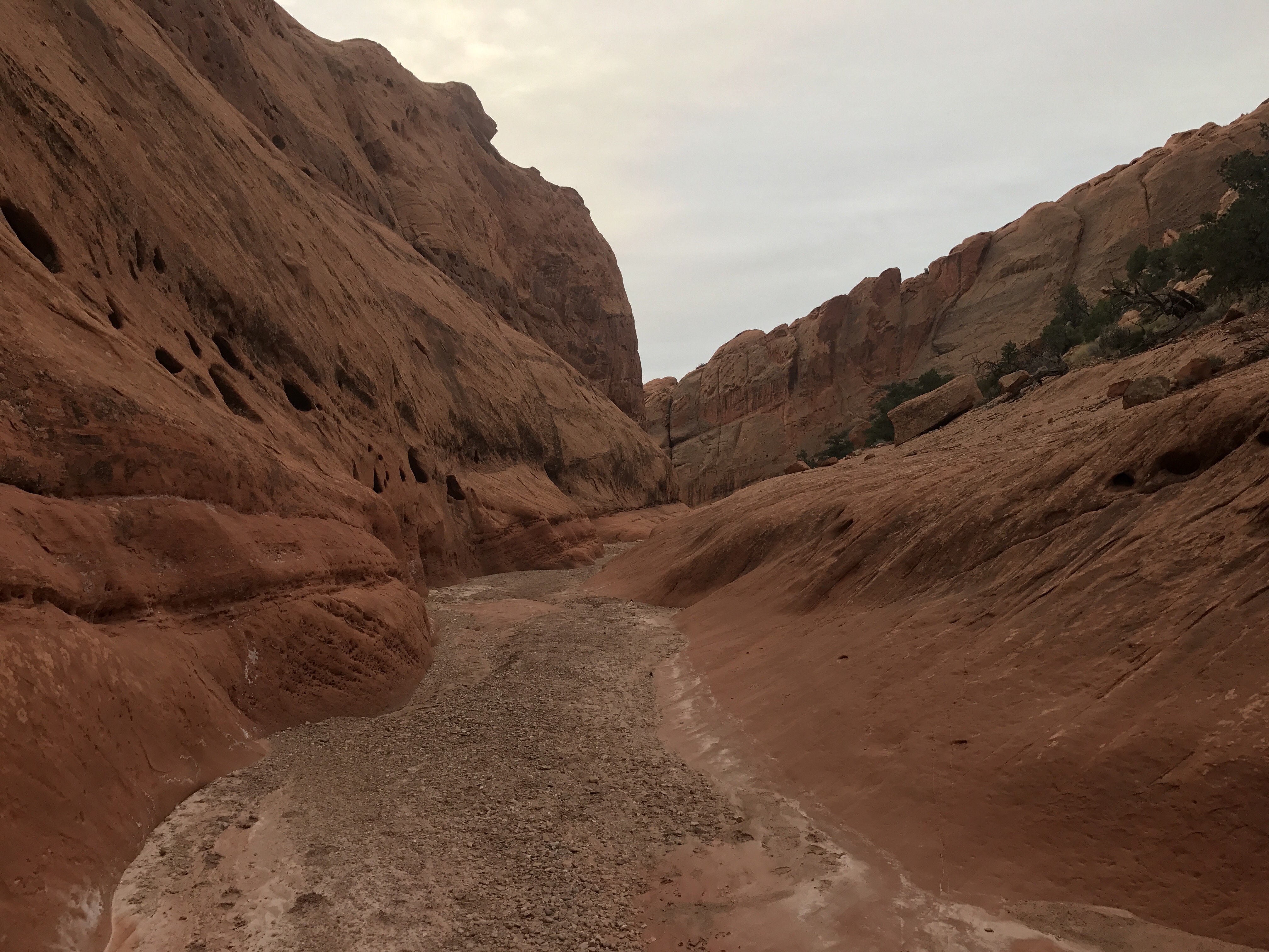 The canyon floor was solid too- hard packed gravel or straight on the slickrock, and since you’re in the canyon the whole time navigation wasn’t really a problem. It made the walking super simple.