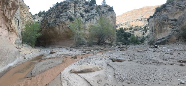 Willis Creek is another beautiful Narrows section, and seems to be pretty popular. There’s a creek that runs down the center and it’s pretty flat, so none of the crazy drop offs like in Round Valley or Bull Creek. I ran into 12 day hikers and a group of 10 equestrians in the canyon that alternated between nice slots and more “open” sections. I’m still amazed at how many people I’ve seen these last two days, but I guess that’s what happens where you’re closer to the road systems.