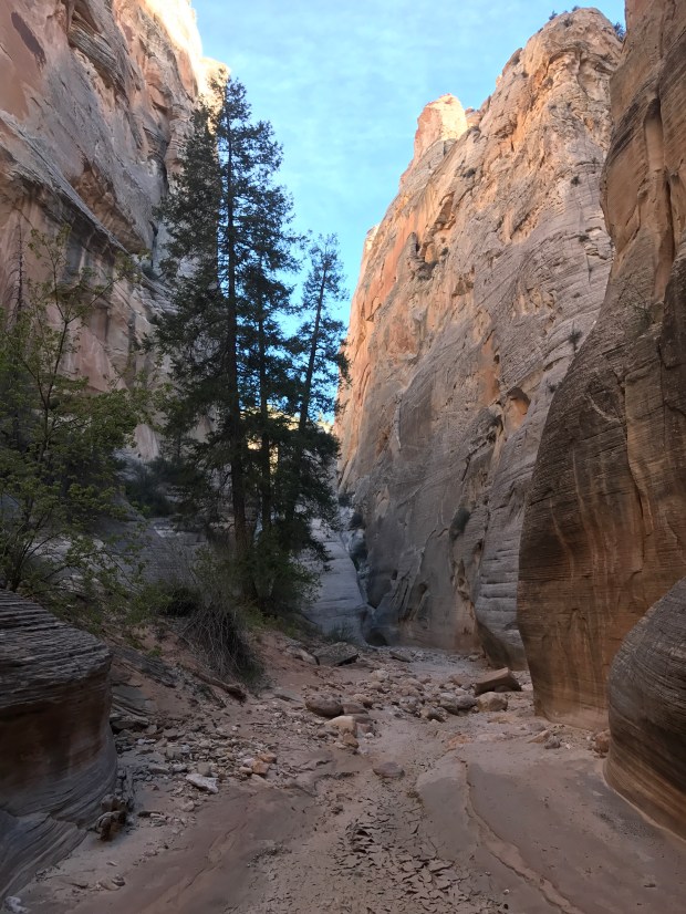 This is an alternate route through a slot canyon suggested and highly recommended by Li Branfours. When I planned my route for today I noticed that a few of the alternates could be looped in together with the guidebook route. The route would be more miles, but I’ve got the time! It’s really nifty when stuff like that is possible so I gave myself a winding route just because. I’m so glad of it and feel so lucky that I can see so much of this area.The first few miles up canyon were pleasant mostly punctuated for me by the reappearance of the ponderosa again.
