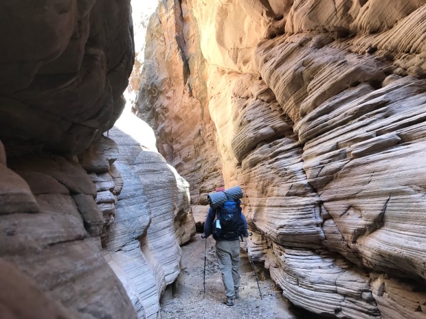 I took a bit of a slower time getting ready this morning as I shook the sand out of everything. It was also pretty chilly which always makes it a bit harder to want to move. The temps dropped into the 30s last night, which meant that I cuddled with my sawyer and my electronics in my sleeping bag. I’m taking no chances with things freezing again! I also gave the sawyer- really any filter I’ve ever used- its biggest test trying to get a quart of water out of silty Sheep Creek. It passed with flying colors!!
