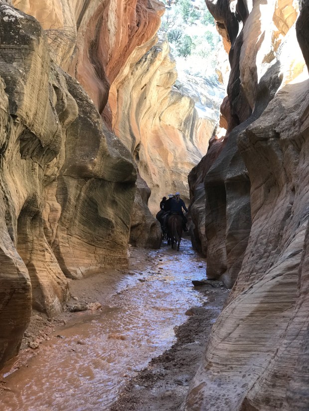 My hiking buddy Greg and I drove from Grand Junction (CO) to Willis Creek on Saturday, April 22. We drove in from the west (Bryce), so we passed you in Tropic on Saturday, probably? (We didn’t get there until about 3:00 pm). I noticed the horse tracks in Willis Creek, which you saw on Friday. We camped at the Willis Creek parking lot–the only day without wind!