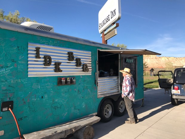 Complete change of scenery. I was passing houses and farms and ranches- again some baring the same last names of the families in the Paria Cemetary. I turned down two unsolicited rides into town, before a pickup pulled over heading the other direction and the guy said out the window, “You’re a Hayduker, aren’t ya. I can just tell by that slightly haggard look you have.” We chatted for a bit. His name was Roy and he’s been running a small ranch down the road since ’98 and has met a number of Haydukers over the past few years. He’s very impressed with the fortitude it takes to do the hike, wished me well and then was off.I got to town around 4:00, made a quick stop st the Grand Staircase-Escalante national Monument visitor Centre before heading to my my all in one hotel/gas station/convenience store with a BBQ food truck around back as the only restaurant in town.