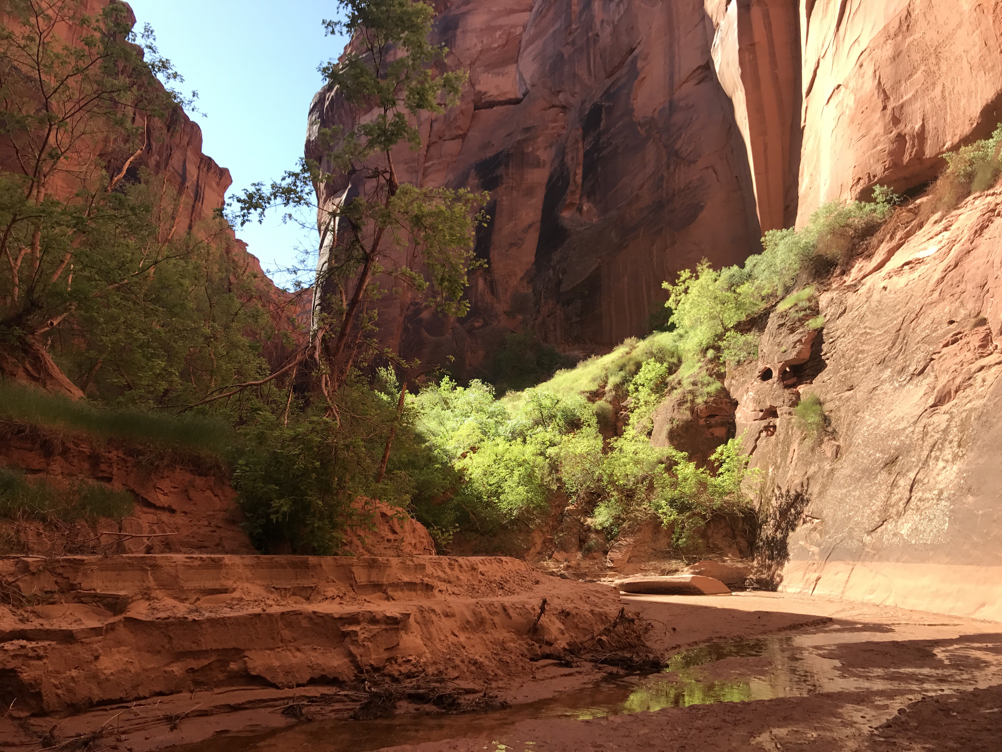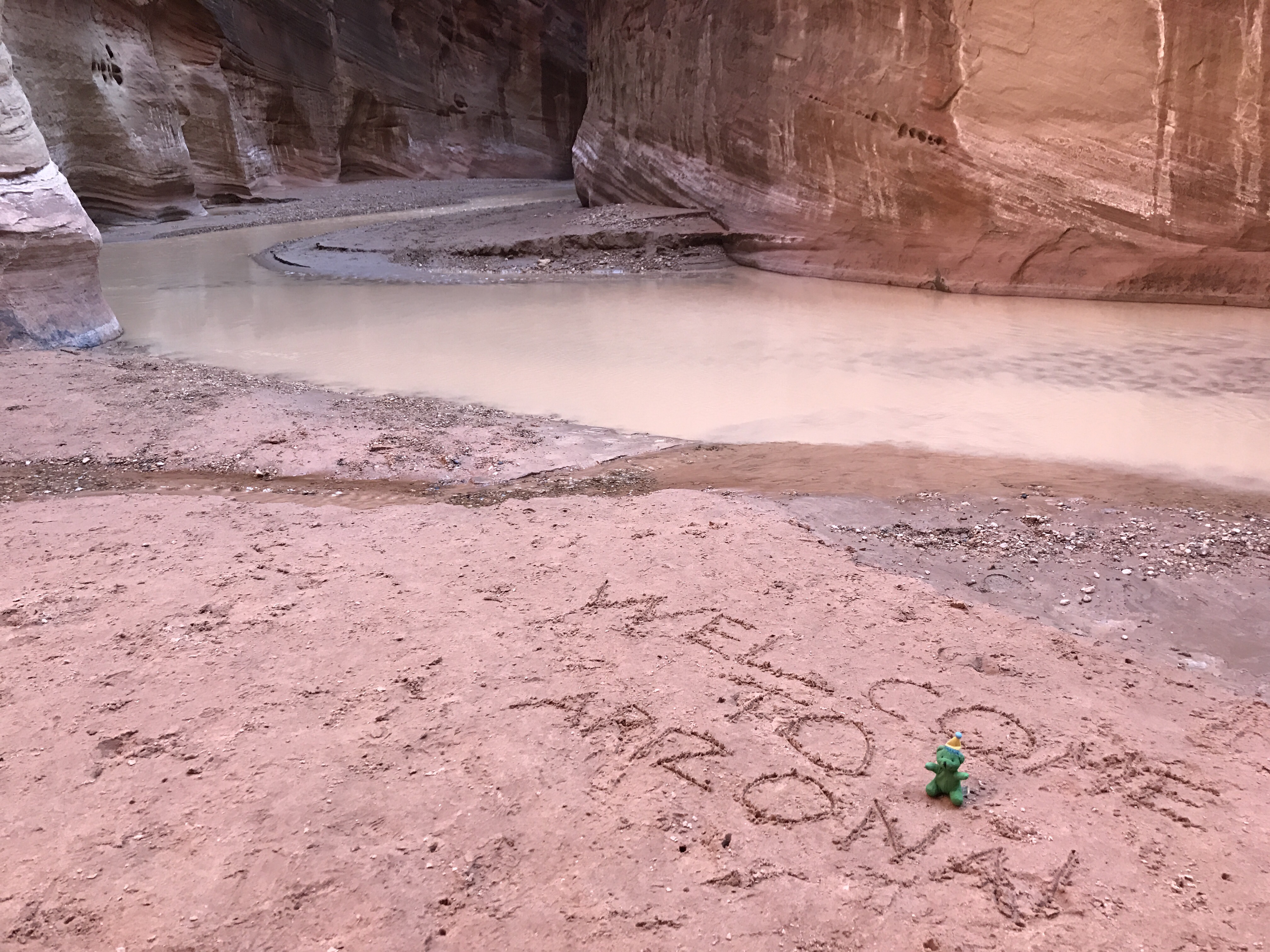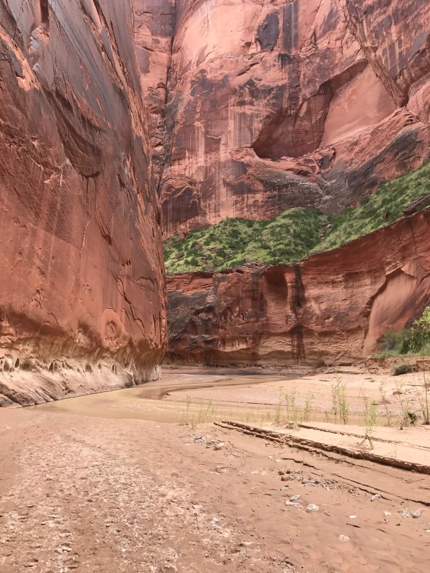 And then before you knew it the Creek was pouring into the Paria River. You almost could have missed the confluence if you weren’t paying attention. Just a short turn and a slight shift in the color of the water. The Paria is almost flowing in its own slot at this point. Almost. The confluence also marked the boundary with Arizona. A new state!!