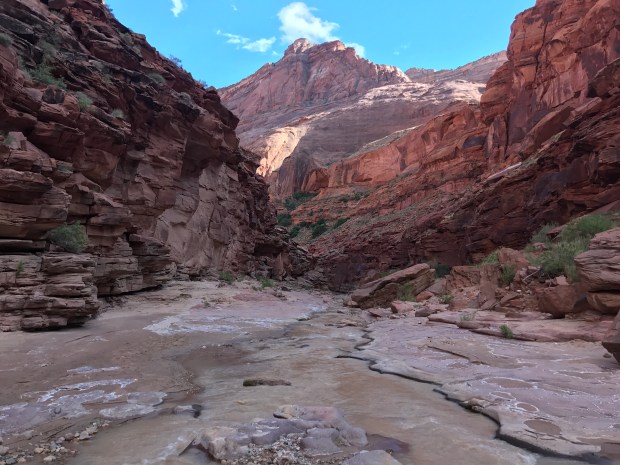 The miles of river wading can get a little tedious though, no matter how spectacular the beauty. And so when the canyon bottom narrowed just a bit and the open sand Benches gave way to rocky shores and a faster creek, I didn’t mind.