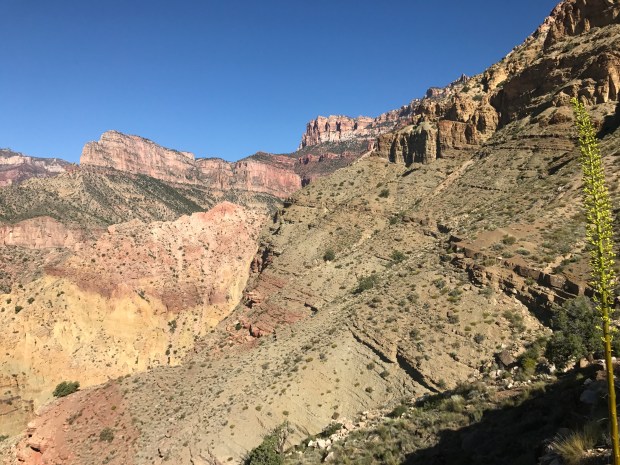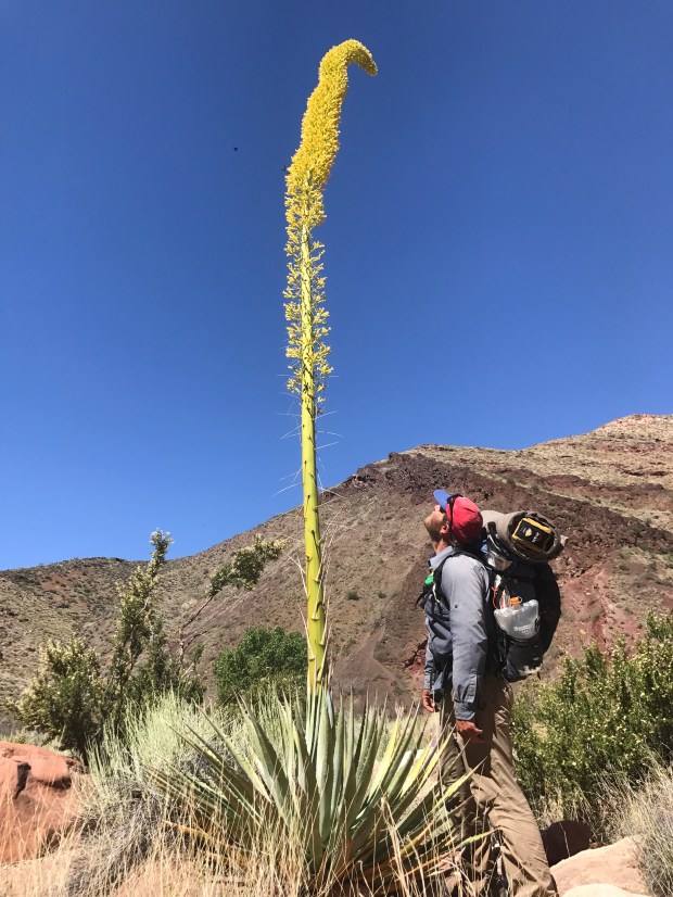 And then there was the the flora. An agave- the century plant – whose stalk grows at least 10 feet high. Some even more! It was an incredibly important plant to the local Native American tribes who used it for both food and weaving. The drop down went relatively quickly all things considered, though I was only able to do 5 miles in the same amount of time I did 8 yesterday. The trail wasn’t nearly as bad as it had been made out to be. For instance I thought the Sundance “Trail” was far sketchier.