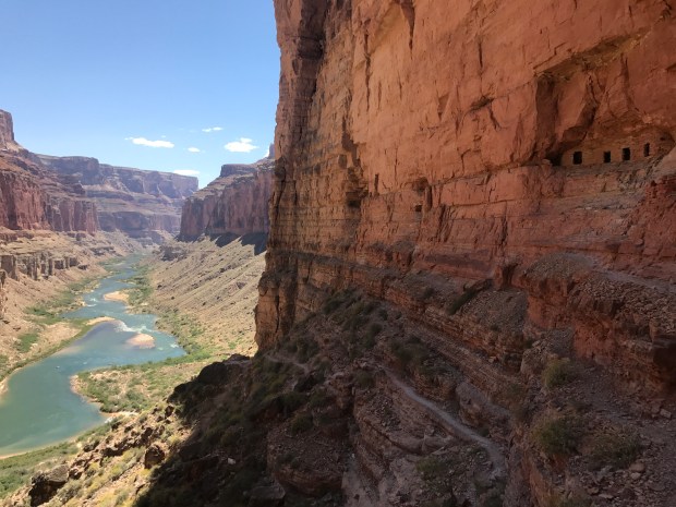 Looking up I could also see the granaries- and the 10+ people who were up there visiting them! I climbed a bit of the way up to the turnoff where I met Star, a member of the boating group, who immediately offered me an apple- an offer that’s so hard to refuse. The midday heat was baking down. The hottest I’ve felt on trail, and I was glad to break again.