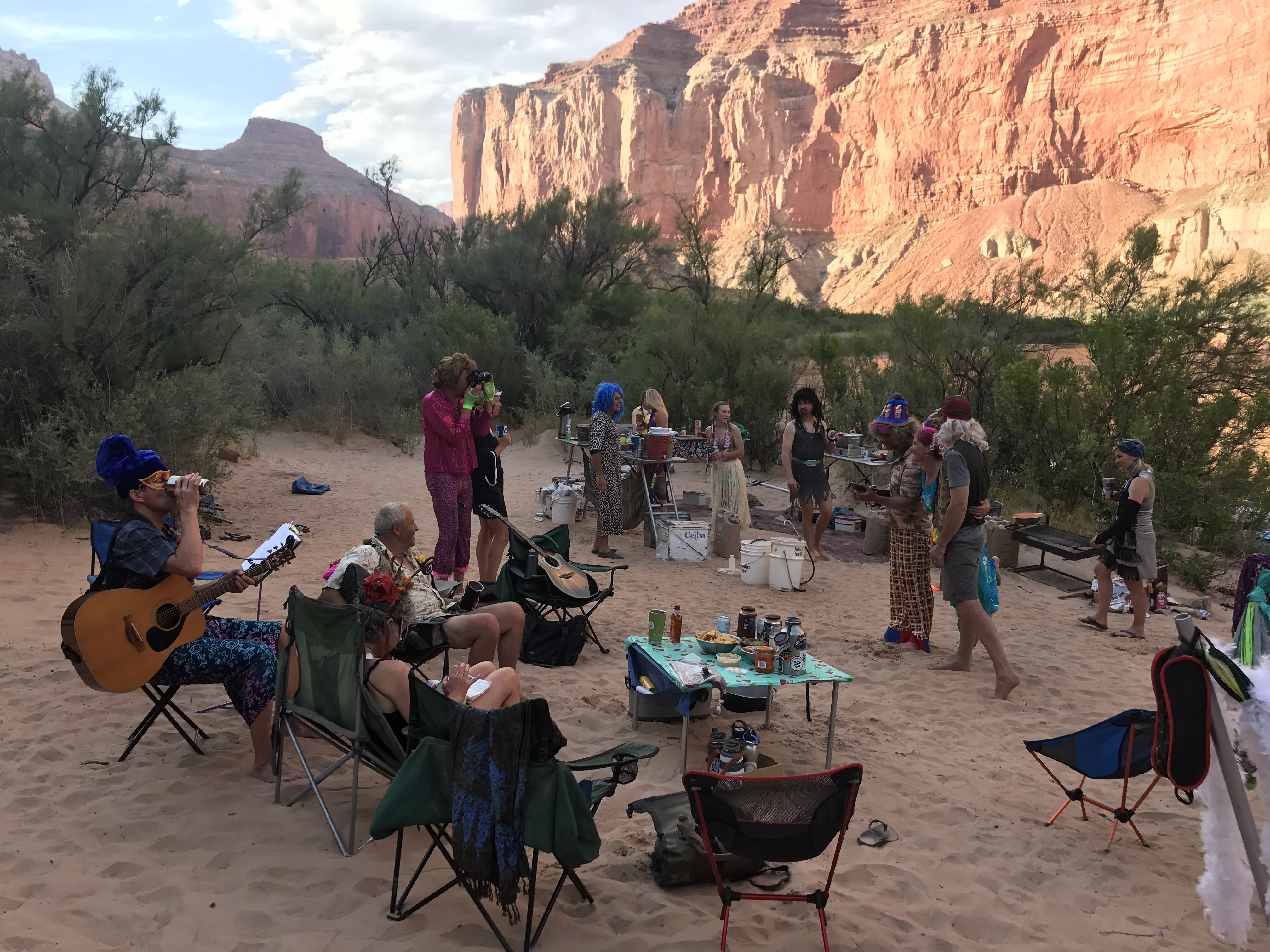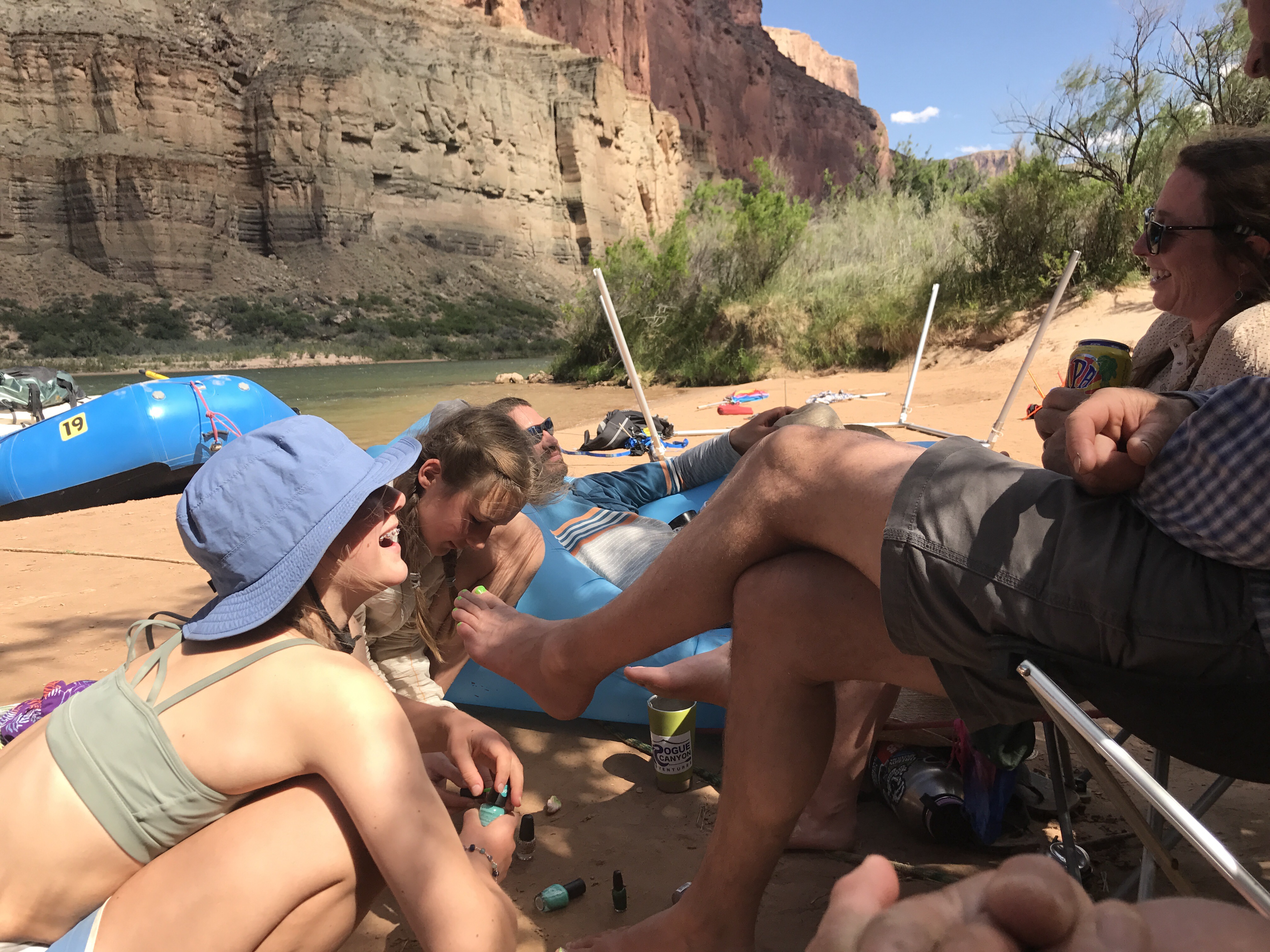 What an incredible group of people! A private trip mostly from the Mt. Shasta and Grant’s Pass area, they have been so gracious and filled with hospitality. They offered to not only have me stay the night but to take me down to the Little Colorado tomorrow so that i could make up the lost miles. Mind definitely made up.The boating lifestyle is pretty incredible. Just how much their able to bring along and store is a little mind blowing. The huge kitchen, fresh fruit, frozen meat, Beer, ice, camp chairs, kites, cots, floating hammockcrafts, guitars, flutes,ukuleles, and so much more.