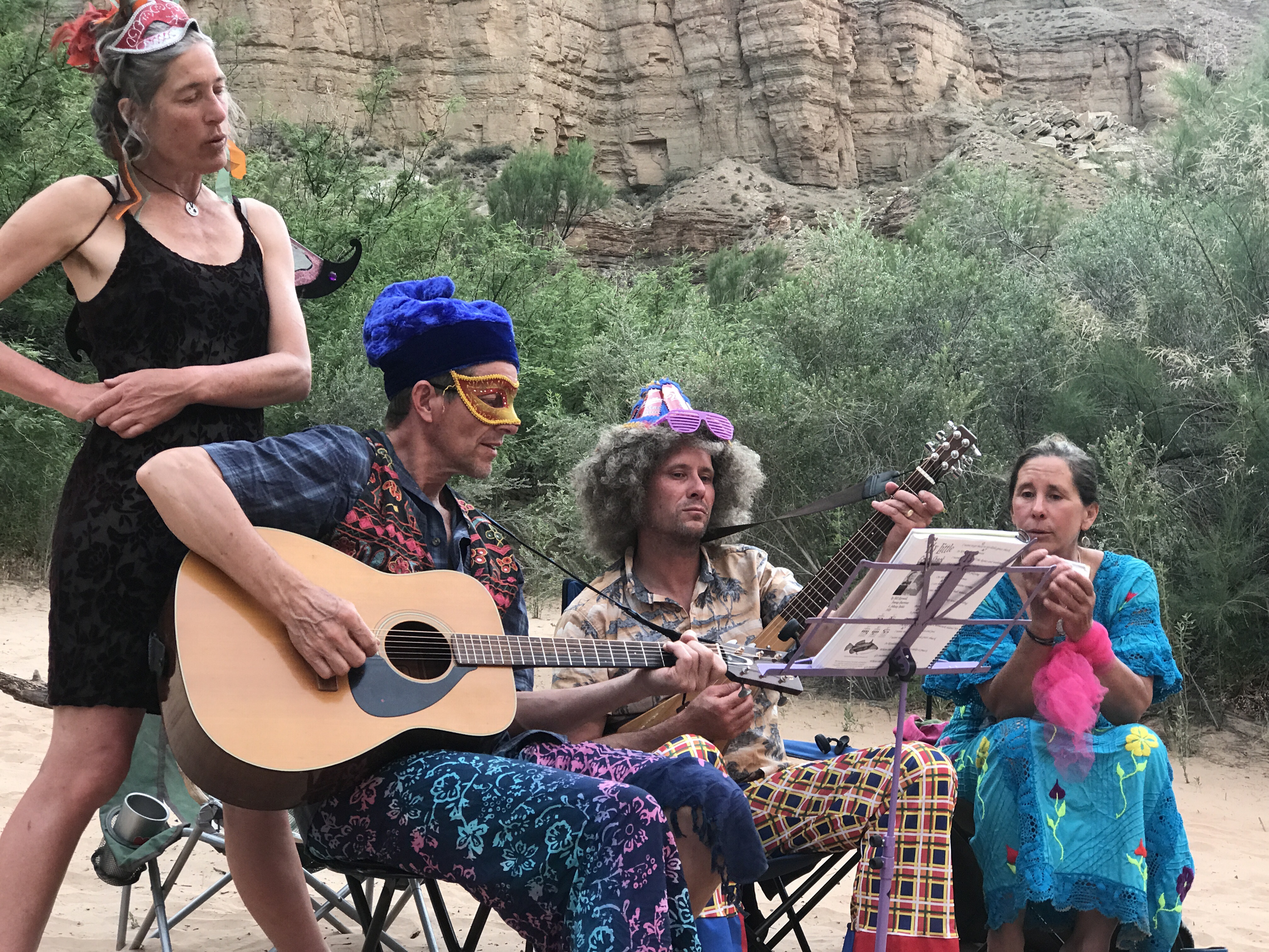 The the kites came out zipping around crazily in the high winds. The Cinco de Mayo festivities began with margaritas and then as I helped chop the veggies for the fish taco dinner, the “Dinnerware” started coming out. Costumes and wigs galore!