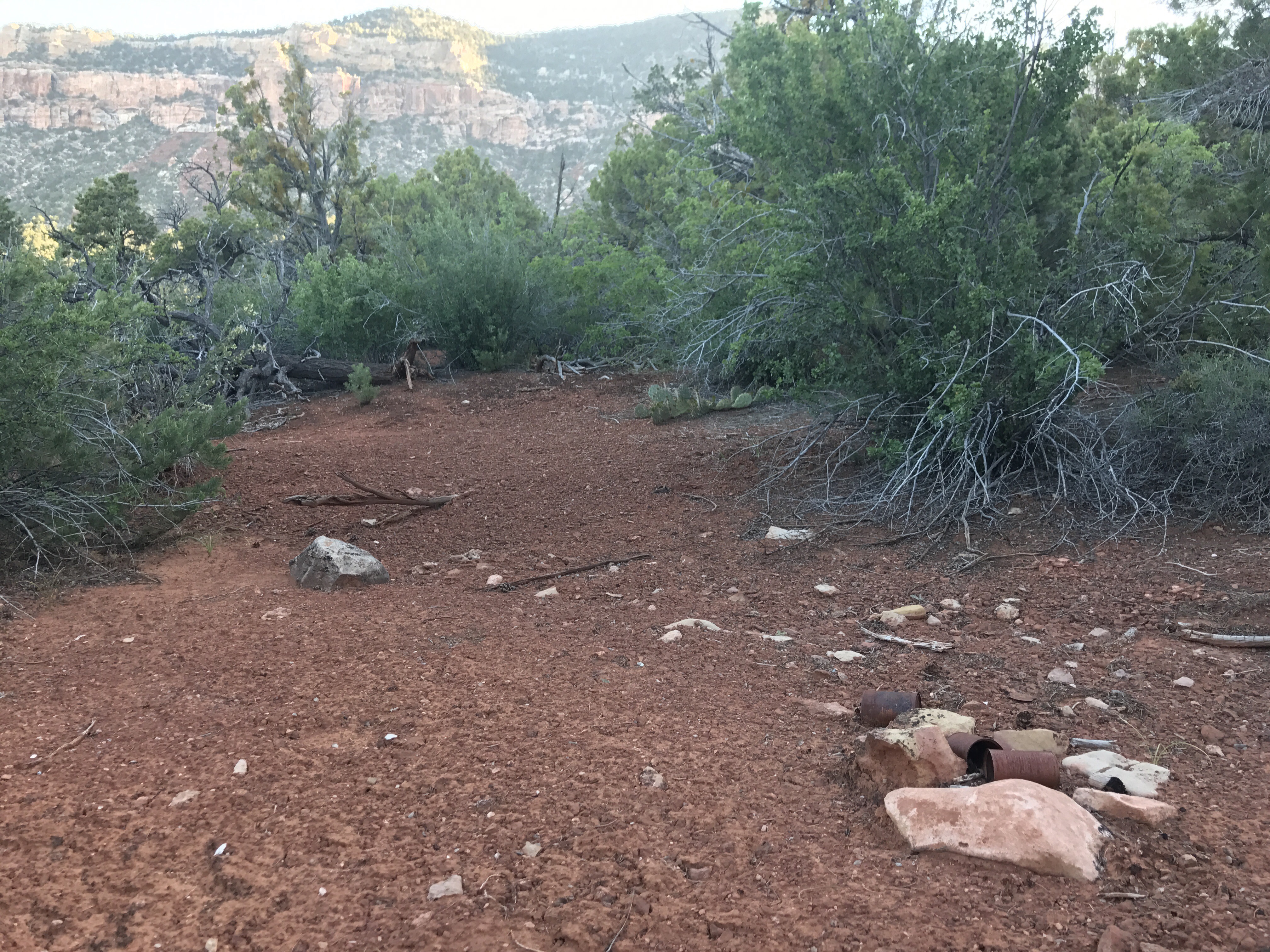 Bottles and cans strewn across the floor at the bottom of Timp Canyon. It must have been less brushy 60 years ago.
