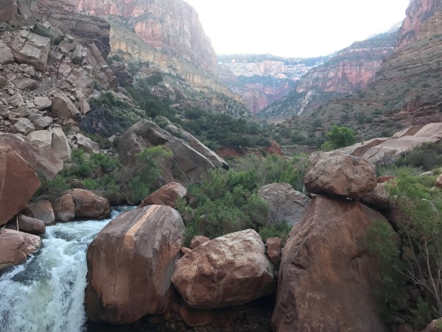 The trail up to the rim in the morning went quicker than I expected. Just taking it slow and steady, not wanting to push anything too hard. Bright Angel Creek babbled along in its course beside me singing it’s cold fresh song until the trail turned off and began the final assault on the rim up Roaring Springs Canyon.
