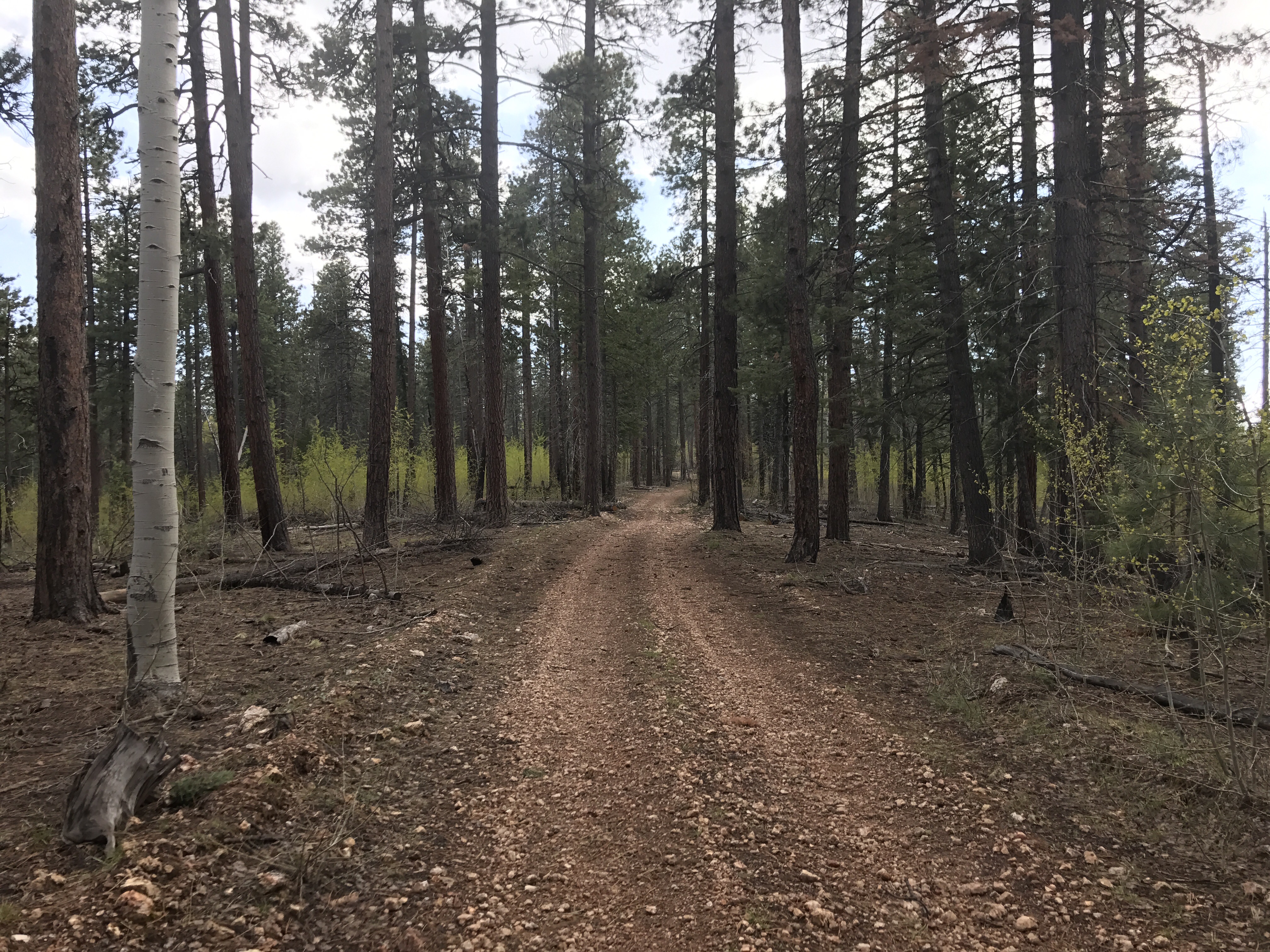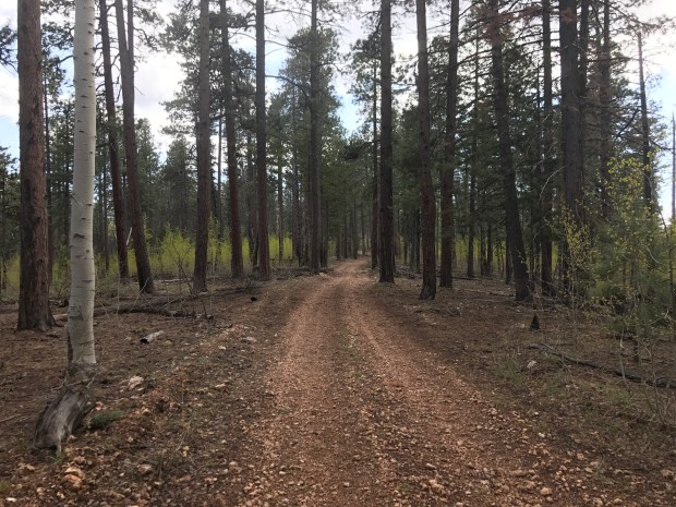 There’s not much special to say about the road walk. After my excitement to see the forest I was disappointed with its appearance. The forest appears to be pretty heavily managed and frequently put through prescribed burns. Rather than looking healthy though it just kinda looked overdone. Scorched and sad. The roadbed was in pretty rough shape and there was tons of blowdown and a couple of late season snow patches to climb over, too.